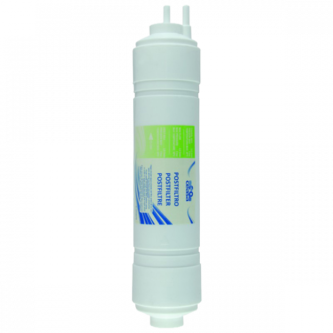 Après le passage dans la membrane, l'eau est débarrassée de toutes ses impuretés, polluants et microbes. C'est une eau pure... Tellement pure qu'elle est très pauvre en sels minéraux. C'est pourquoi ce post filtre est installé en dernier, car il redonne à votre eau, les sels minéraux bénéfiques à votre santé et permet à celle-ci de ne pas être fade au goût.
