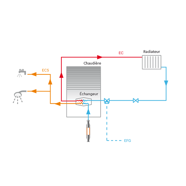 Pour les valeurs de TH élévées ou pour les installations dont la production ECS est bouclée sur l'échangeur, l'adoucisseur reste la solution à privilégier.