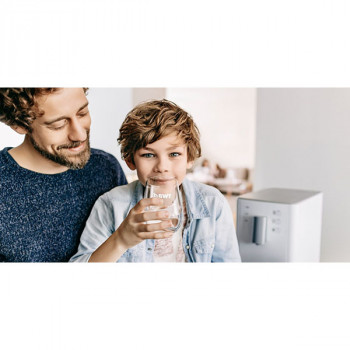 Dotée d'une lampe UV qui désinfecte l'eau et d'un filtre Magnesium Mineralized Water, cette fontaine fournit une eau de boisson de qualité. L'eau du robinet est ainsi transformée, débarrassée de ses impuretés et même enrichie en magnésium. Les besoins humains en apports de sels minéraux sont ainsi satisfaits au quotidien et l'expérience gustative de cette fontaine est tout simplement unique !
